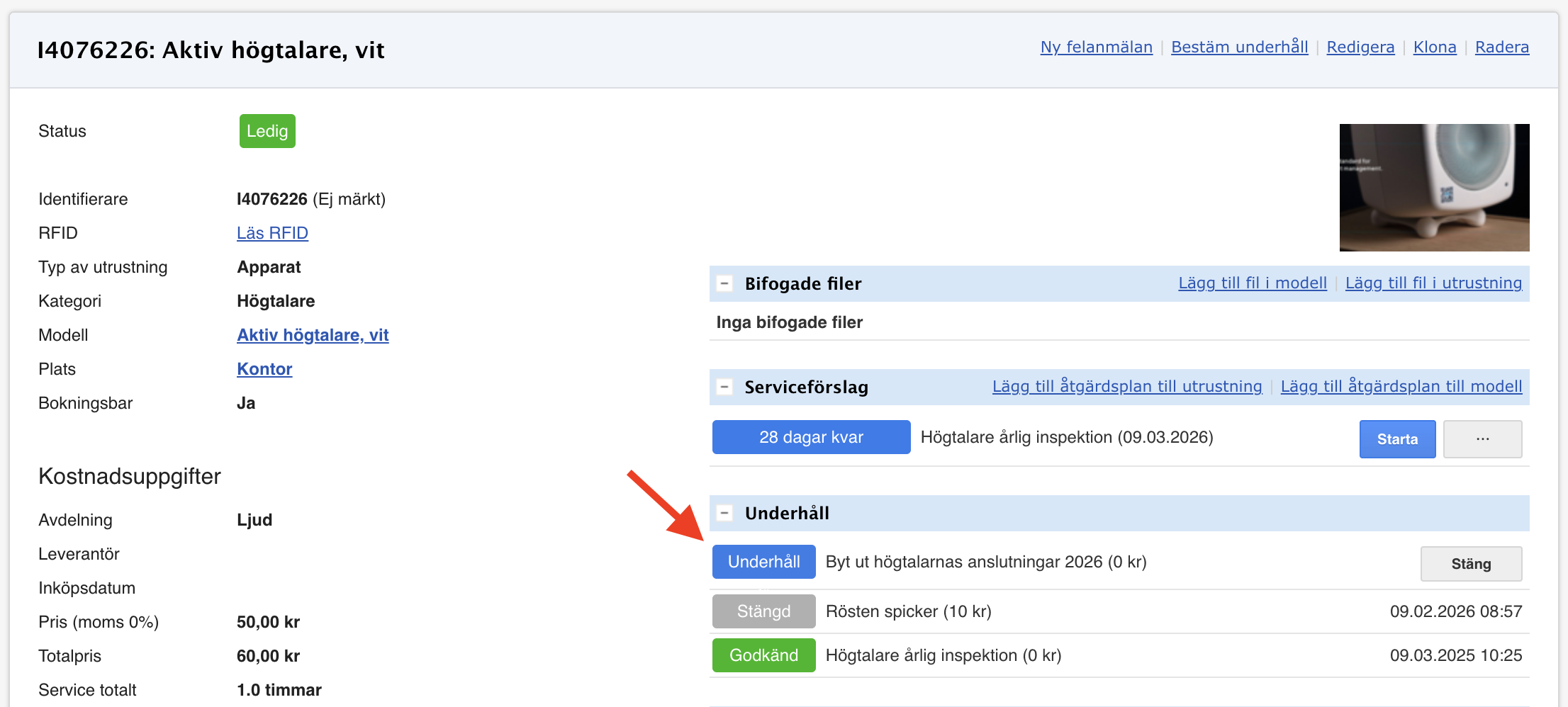 Bestäm underhåll (utrustningskort)