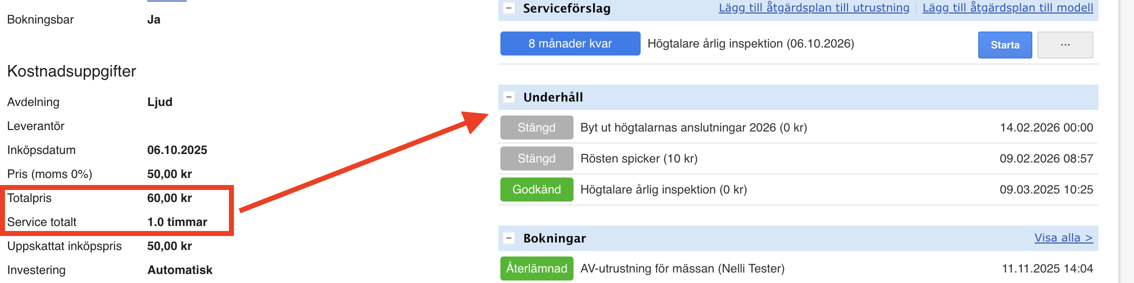 - Totalpris: utrustningens inköpspris + kostnader för underhåll